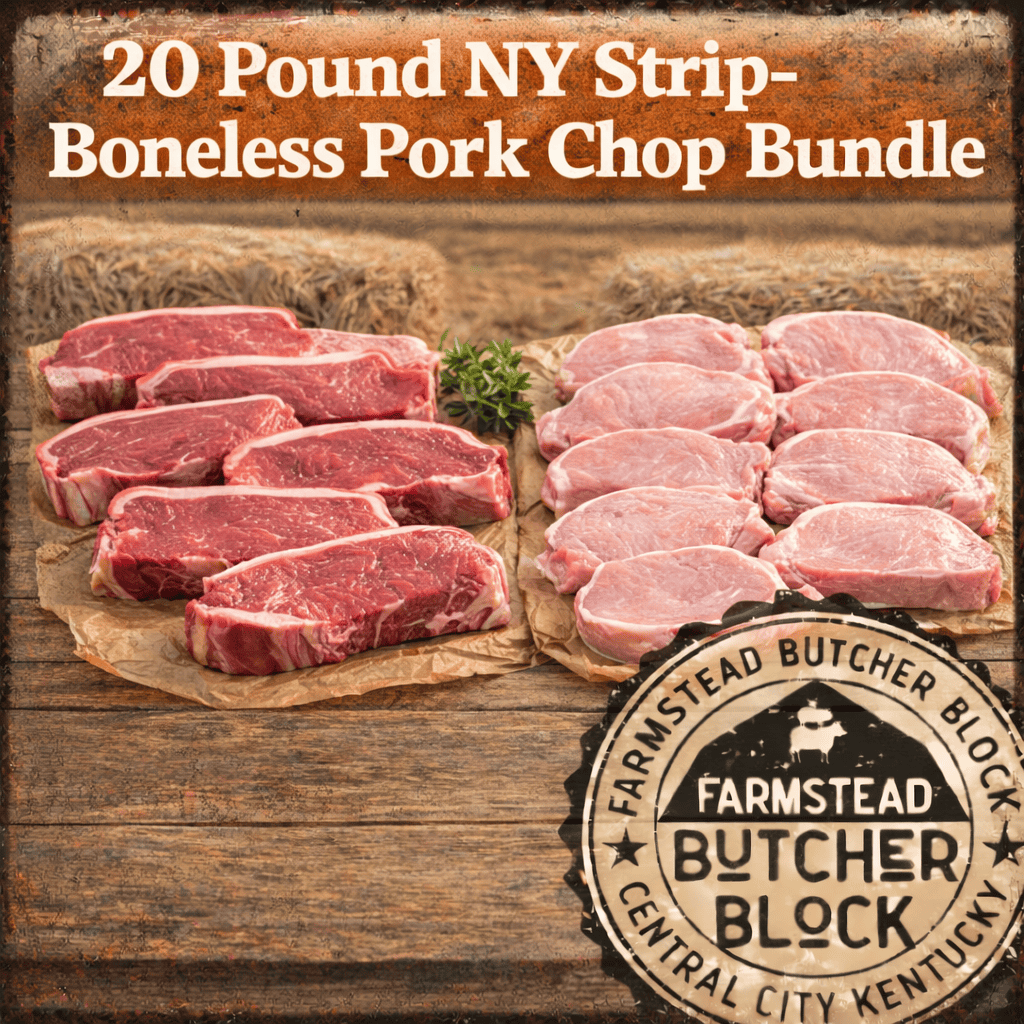 20 Pound NY Strip-Boneless Pork Chop Bundle